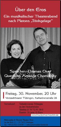 Seit Anfang 2004 arbeite ich mit der australischen Querflötistin Amanda Chominsky zusammen. Es geht darum szenisch vorgetragene Texte mit Musik zu verbinden. Die erste Produktion war der musikalisch-philosophische Theaterabend „Über den Eros“, der am 4. Juni 2004 im Nürtinger Zentralsaal Premiere hatte. Weitere Produktionen: „Lock- und Liebesgedichte (2007)
